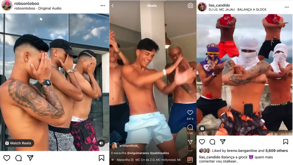 O influencer mirim João Lucas Veras, de seis anos, devota boa parte da sua página no Instagram para vídeos com dancinhas cujas coreografias encarnam as letras sexuais de músicas como “Dançarina – Doida Pra Sentar,” de Pedro Sampaio (feat. Mc Pedrinho): “Mina gostosa, no beat ela encosta […] Eu vou provocar, vou descer Vou instigar […] Essa menina é o puro talento descendo Joga a mãozinha pro alto quem tá enlouquecendo […] Ah, ah-ah-ah, ah-ah-ah, doida pra sentar.”