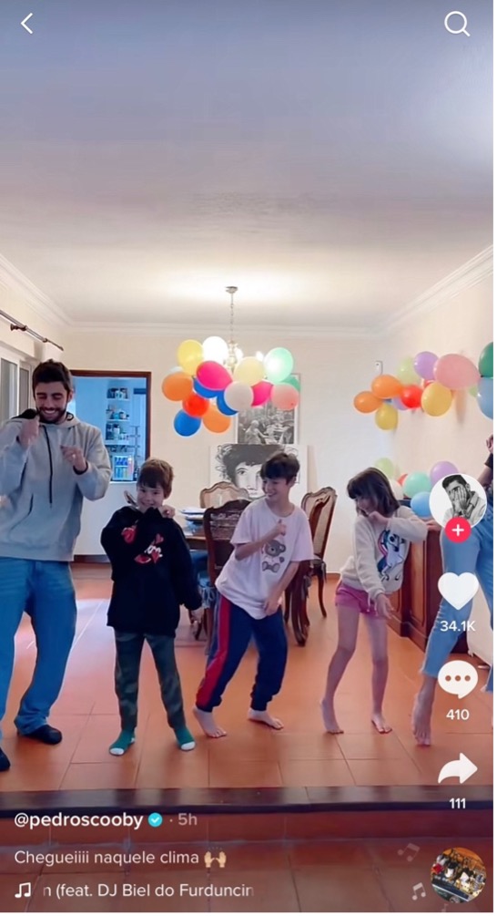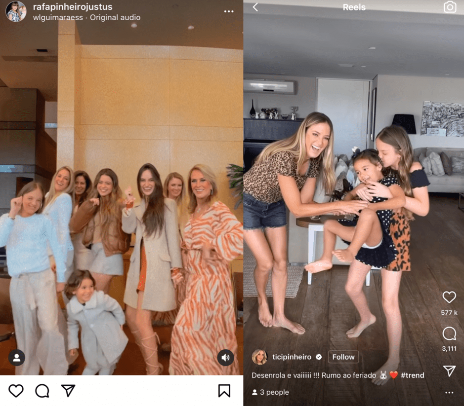 No post da apresentadora Ticiane Pinheiro, a incorporação da diferença sexual homem falo–mulher buraco disponível também é uma performance em família: Ticiane e outras sete pessoas participam da coreografia viral com a música “Desenrola Bate Joga de Ladin,” do rapper L7NNON e Os Hawaianos, incluindo sua mãe e garota de Ipanema Helo Pinheiro e sua filha Raffaela Pinheiro Justus.