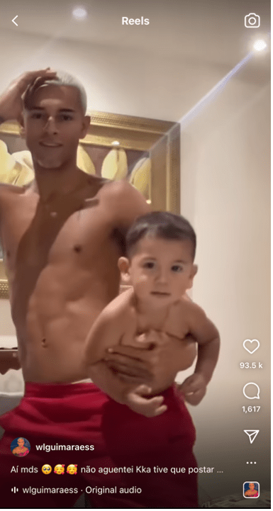 Em um Reels do influencer Willian Guimarães uma criança de dois anos ou três é literalmente utilizada como apêndice peniano ao Guimarães carregá-la com uma mão na altura do quadril ao fazer os movimentos penetrativos da coreografia. “Ai mds não aguentei Kka tive que postar…,” diz a legenda.