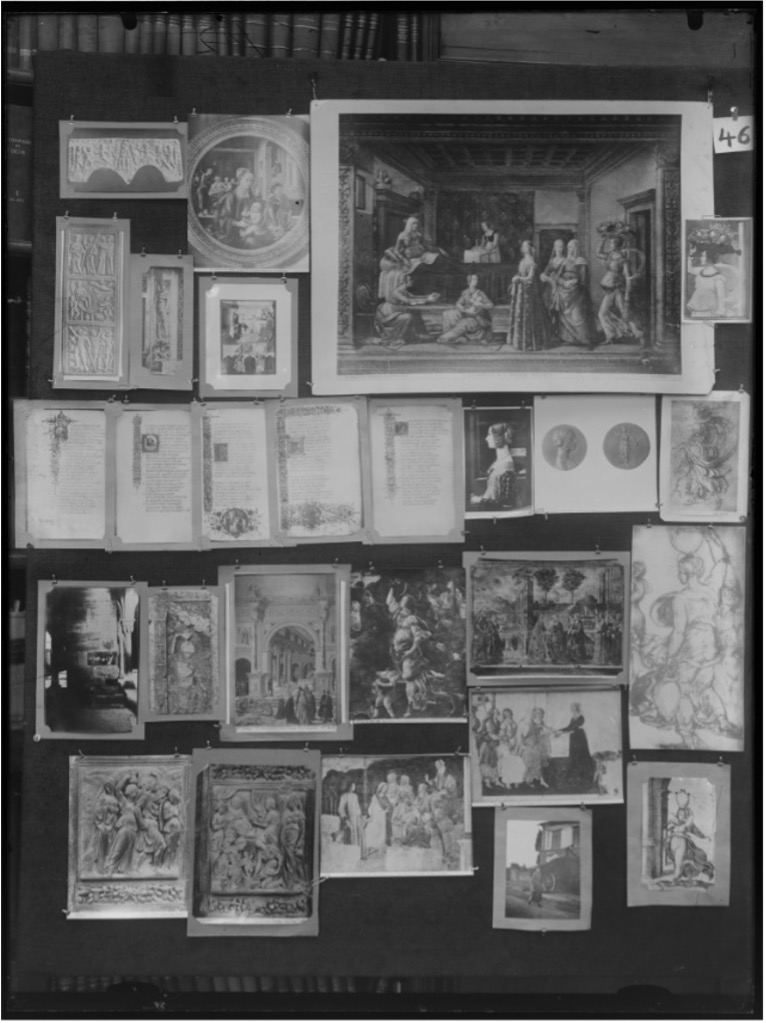 Mas vejamos o exemplo que, para Didi-Huberman, funciona como uma alegoria para o método. Comecemos destacando a prancha 46 do Atlas Mnemosyne, de Aby Warburg. Depois, destaquemos dessa prancha o afresco O nascimento de São João Batista, de Domenico Ghirlandaio — encontrado na Capela Tornabuoni, que fica em Santa Maria Novella, considerada a mais importante igreja dominicana de Florença.