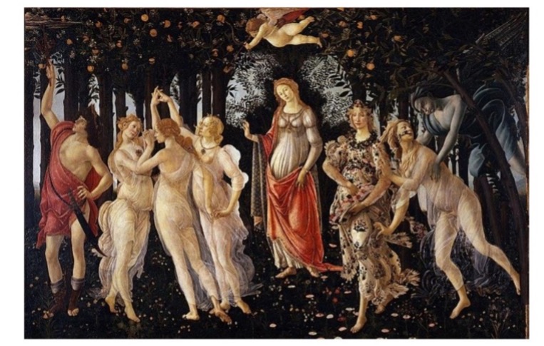Como uma simples serva que traz elementos para restituir as forças de Santa Isabel, ou, em outro afresco, como a responsável pela morte de São João Batista — inscrição curiosa e bastante cruel. “Caso de desejo, como um sintoma inconfessável no meio da cena religiosa” — escreve Didi-Huberman. Warburg havia decidido olhar para essa forma sintomática. “Sempre ela que trazia vida e movimento a representações habitualmente calmas”. Olhar para as margens dos quadros do Renascimento — olhar, segundo Warburg, para “essas formas que parecem varrer a representação (tal como uma corrente de ar)”[32]. E “de fato [escreve Didi-Huberman], passam-se muitas coisas perturbadoras nas margens dos quadros da Renascença, como na Primavera, onde vemos, à direita, saindo do bosque, Zéfiro fecundando a ninfa Clóris, e esta desde logo ‘a vomitar’ os seus filhos sob a forma de um rosário de flores que saem de sua boca”[33]. Esses elementos parecem sempre estar vindo de um outro lugar, de um outro tempo e invadindo as histórias retratadas.