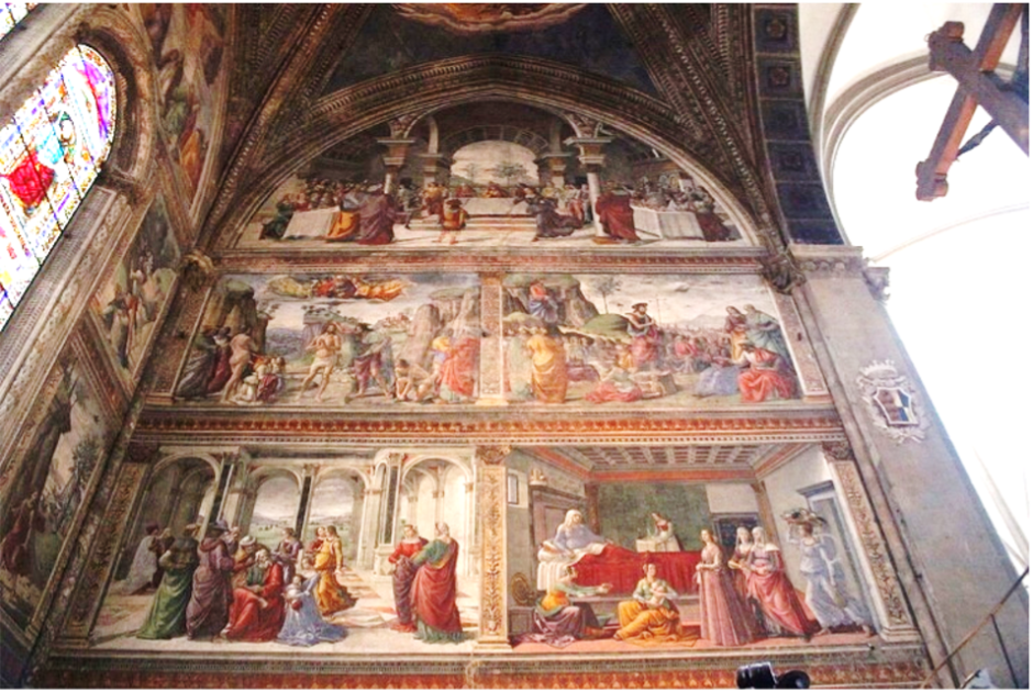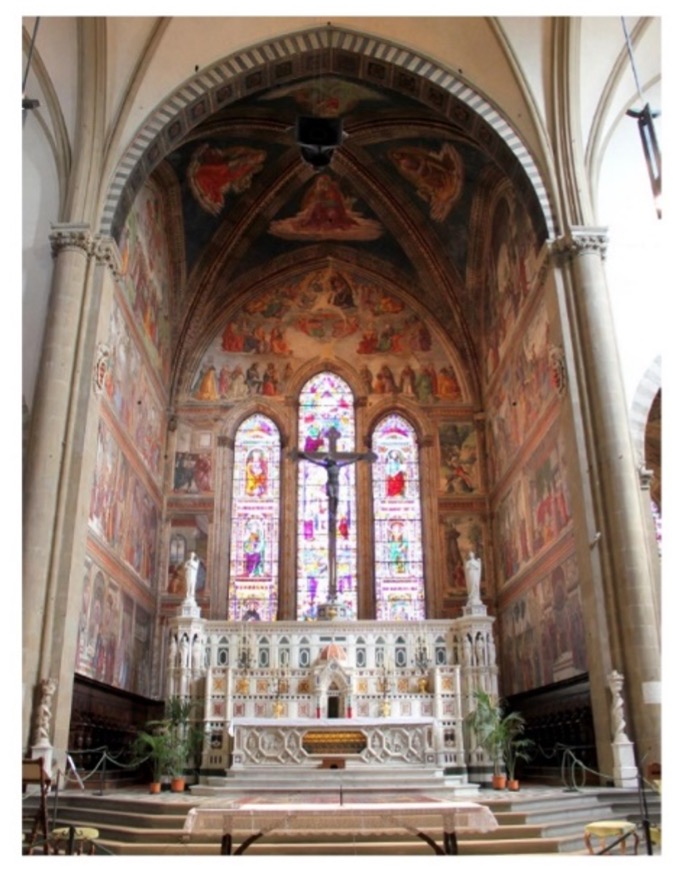 Abaixo podemos ver duas fotografias da capela Tornabuoni e o seu esquema: