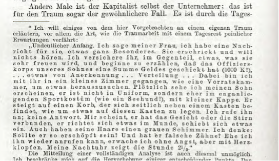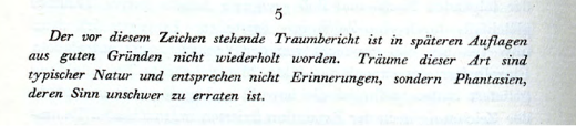 Na seção B do quinto capítulo, que apresenta sonhos cuja fonte são as experiências infantis, Freud encerra o terceiro parágrafo da primeira edição com este breve relato:
