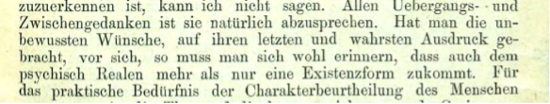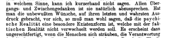 [Hat man die unbewussten Wünsche, auf ihren letzten und wahrsten Audruck gebracht, vor sich, so muss man sich wohl erinnern, dass auch dem psychich Realen mehr als nur eine Existenzform zukommt.]